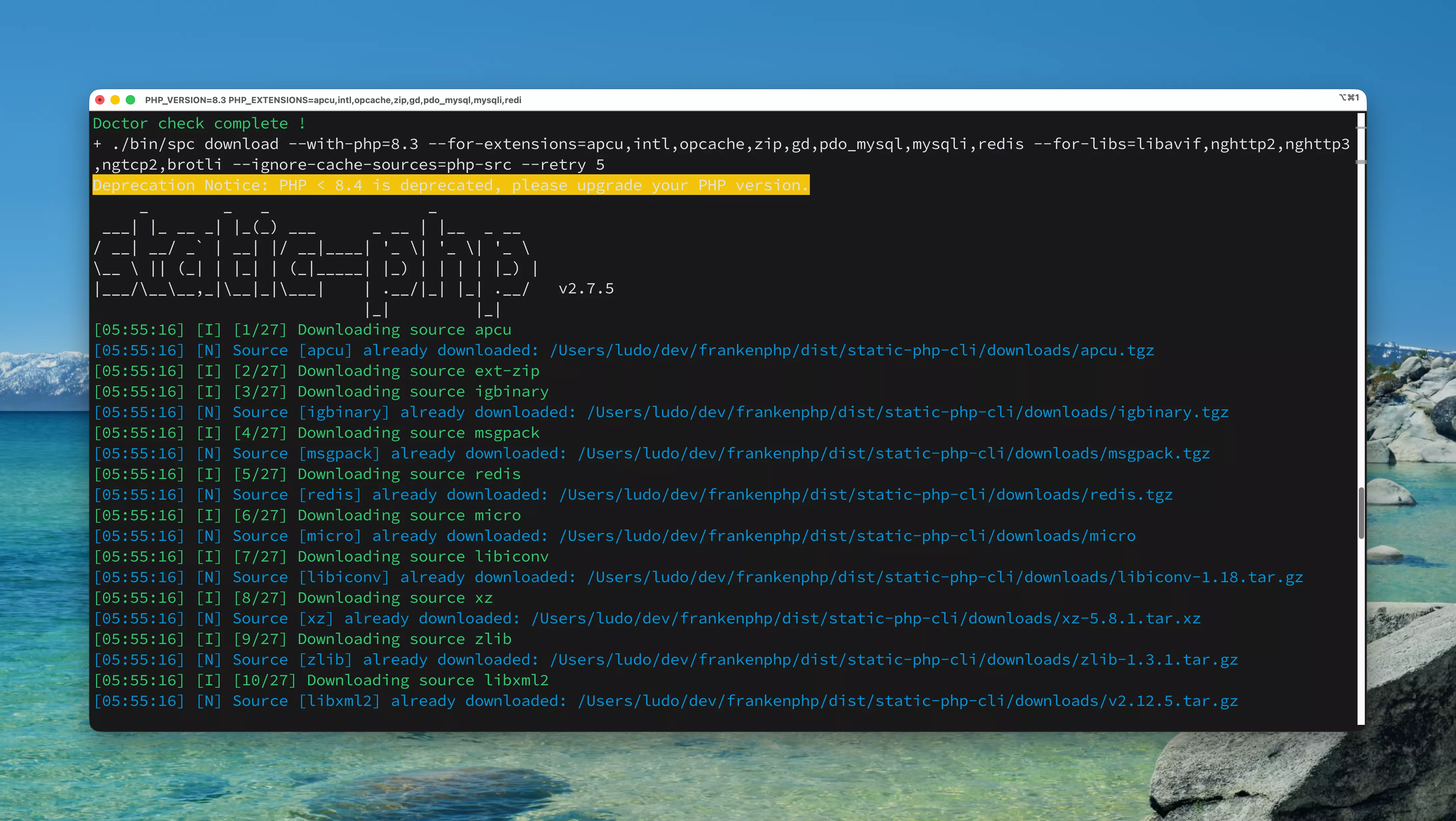 Le projet pouvait sûrement fonctionner sur du PHP 8.4 mais je n'avais pas envie de tenter le diable, je voulais juste pouvoir travailler (et ça me permettait de mieux comprendre FrankenPHP).