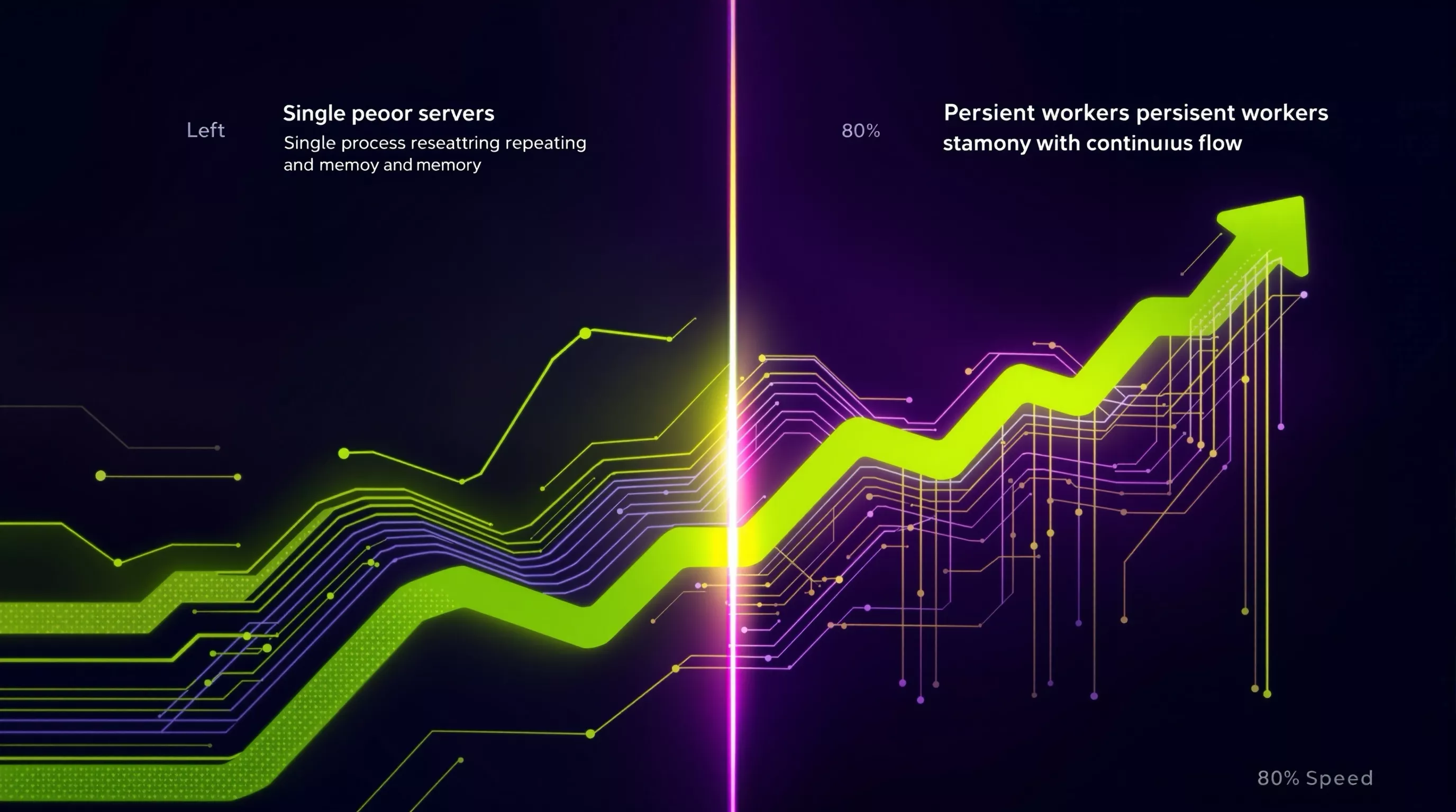 Contrairement à PHP-FPM qui redémarre complètement votre application à chaque requête (autoloader, construction du container, etc.), le mode worker de FrankenPHP permet à votre application de rester en mémoire et de réutiliser les éléments qui peuvent l'être entre les différentes requêtes HTTP.